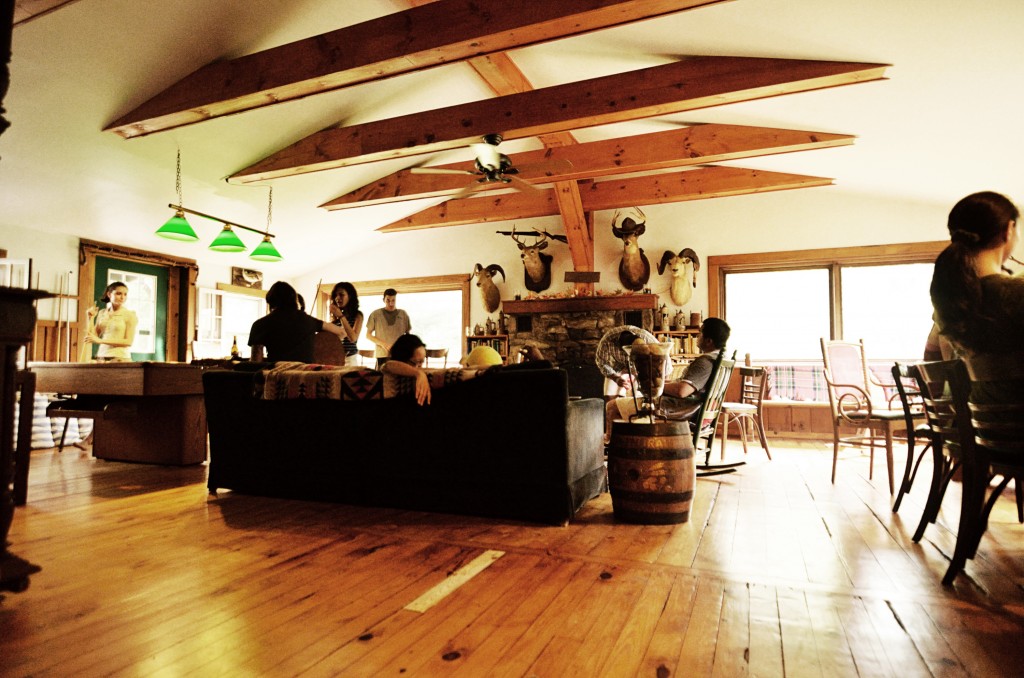 A four hour drive from Manhattan and an hour after losing reception, we saw a sign that informed us “Pavement Ends.” In the car, Amanda, Edison and I looked at each other, trying to understand what was happening when the prophecy came to pass that the pavement ended. A few minutes later, we found the lodge we would be staying in for the next four days. It was a quaint rustic thing nestled in the Adirondacks that looked equal parts family comedy and horror.