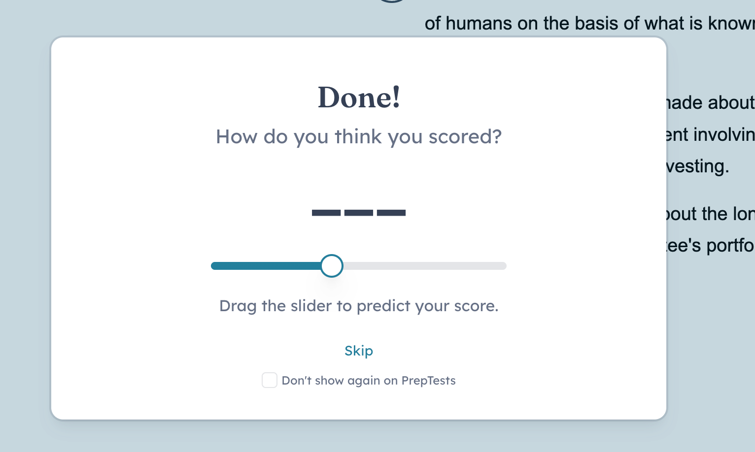 When you finish a drill, solo section, or Preptest, we ask you to predict your score.