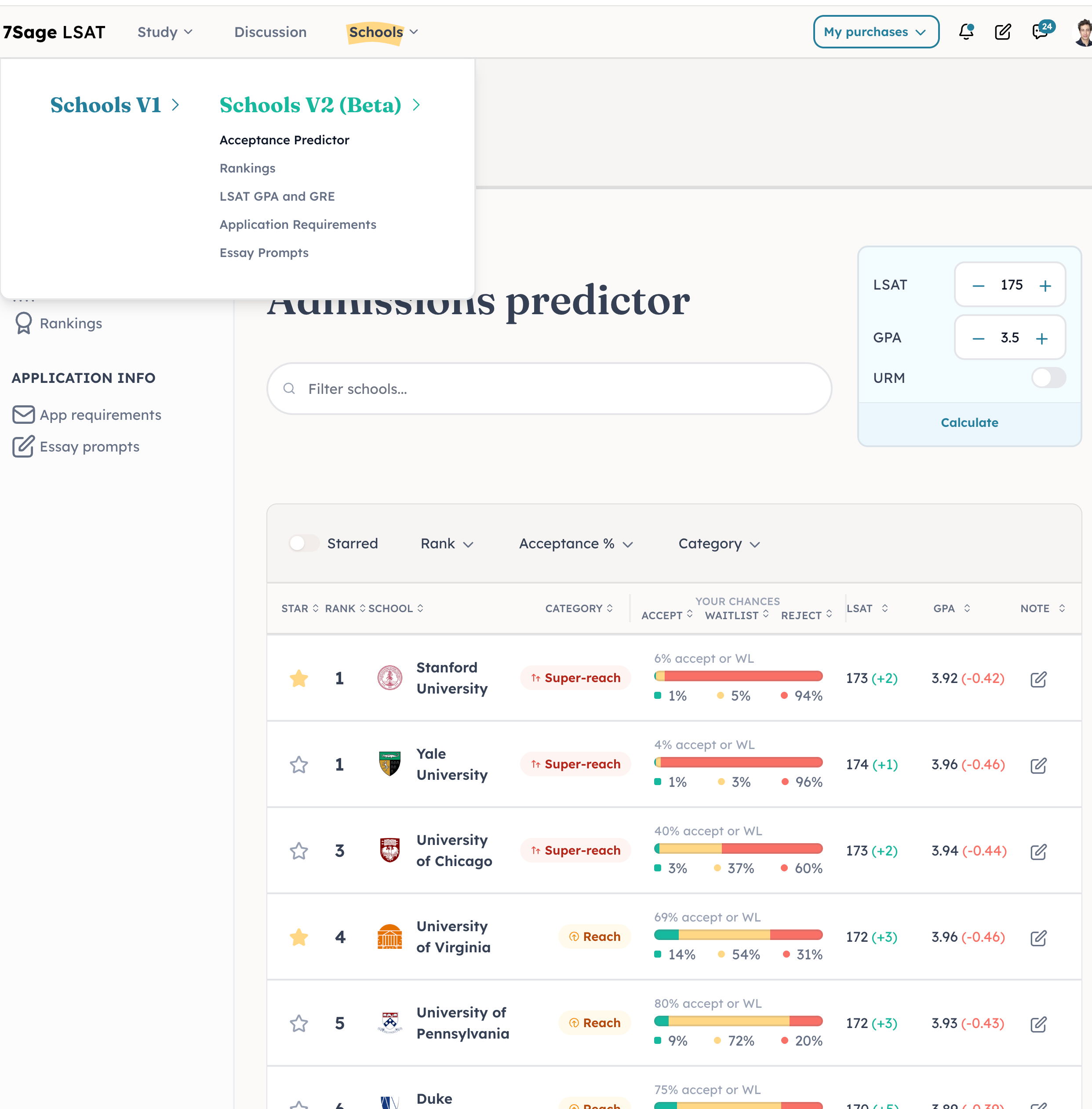 A new version of the admissions predictor and other law school info tables is live!