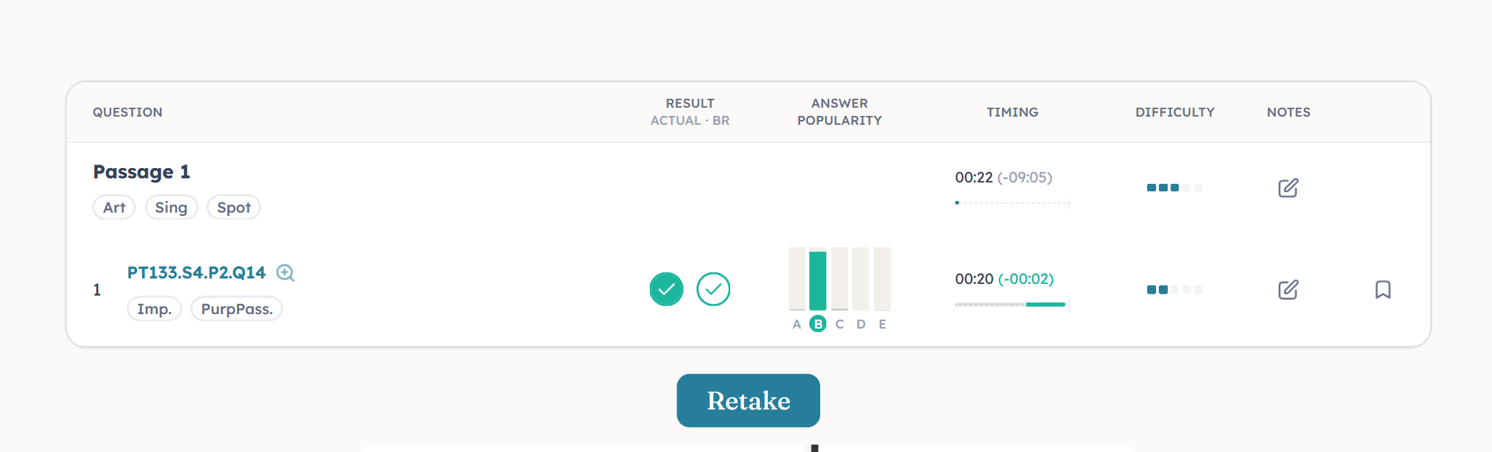 For this RC drill even though I got some questions wrong the clean/ BR/ actual take does not show up for any of the questions.