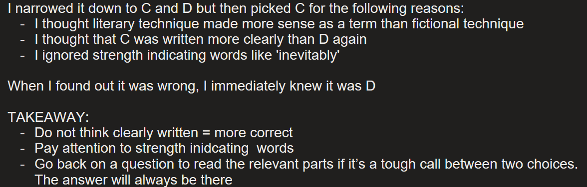 I still need help understanding how I'm supposed to understand something like A is wrong. I was hesitant on choosing A in this, but still felt it was right. D didn't show up to me at all. What can I do to figure it out?
