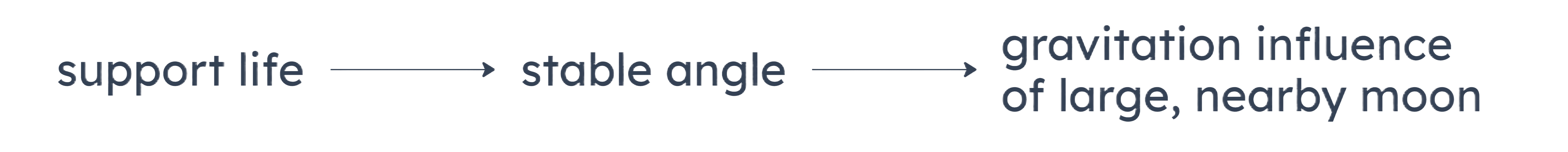 Without the Earth’s moon, the Earth would not be able to support life. Mars lacks a necessary condition for life—a stable axis tilt angle. This ensures Mars cannot support life.