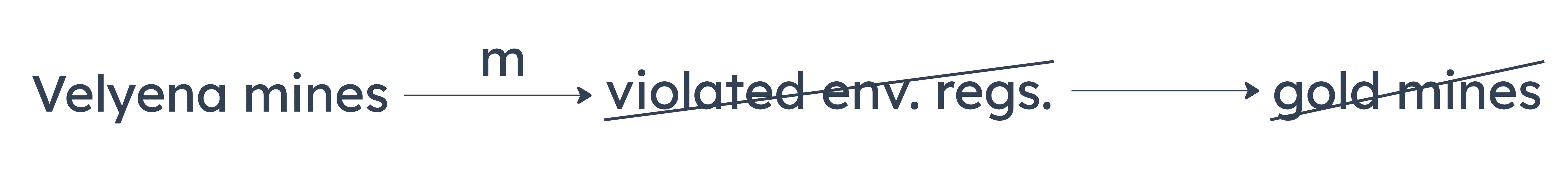 Most mines that Moradco operates in the province of Velyena have never violated environmental regulations. Every gold mine Moradco operates has at some time violated environmental regulations.